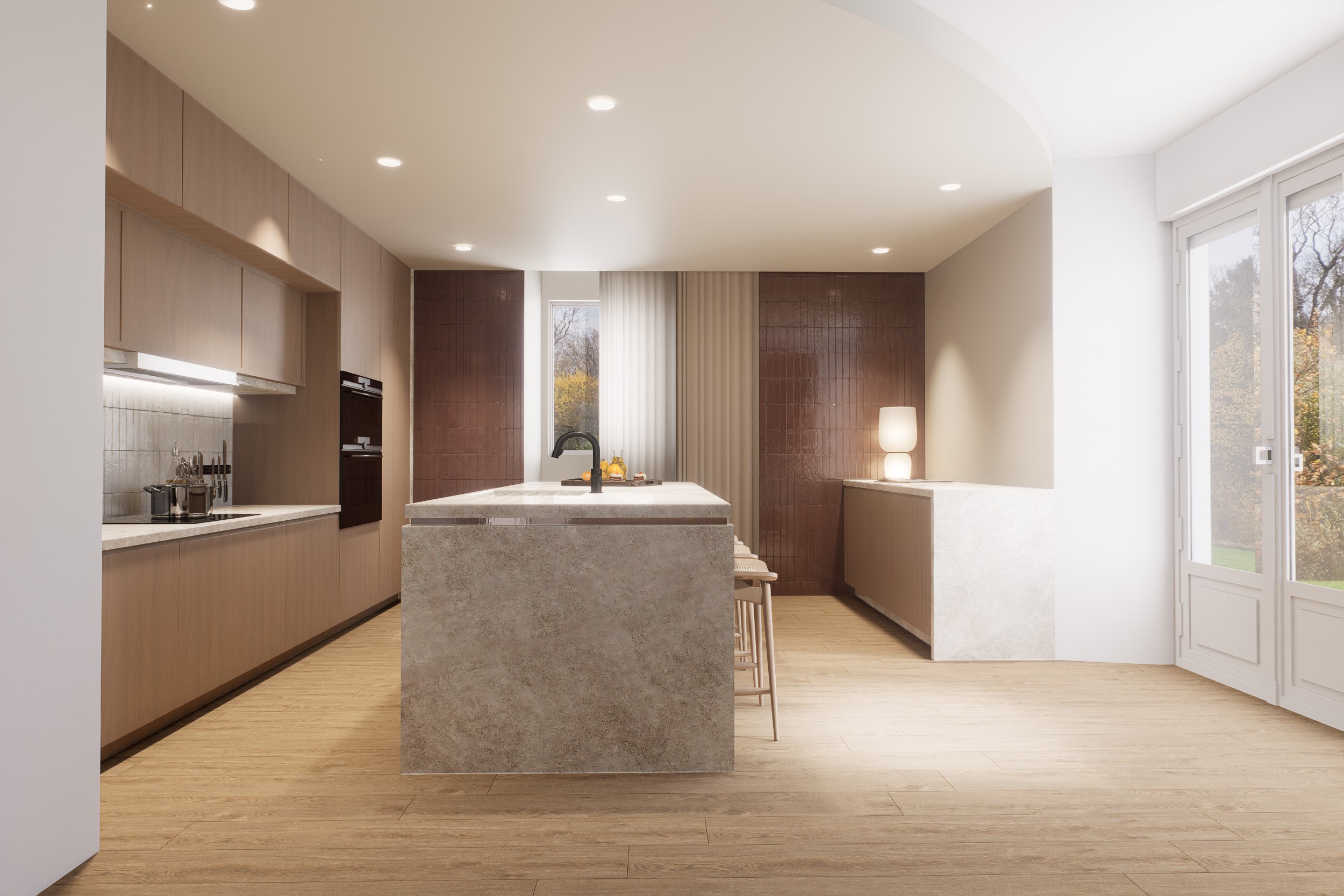 Rénovation d'une cuisine dans un style moderne et épuré, où l'équilibre entre simplicité des lignes et jeux de contrastes crée une atmosphère dynamique et contemporaine. Les choix de couleurs et de faïences contrastantes apportent caractère et personnalité à l'espace.
